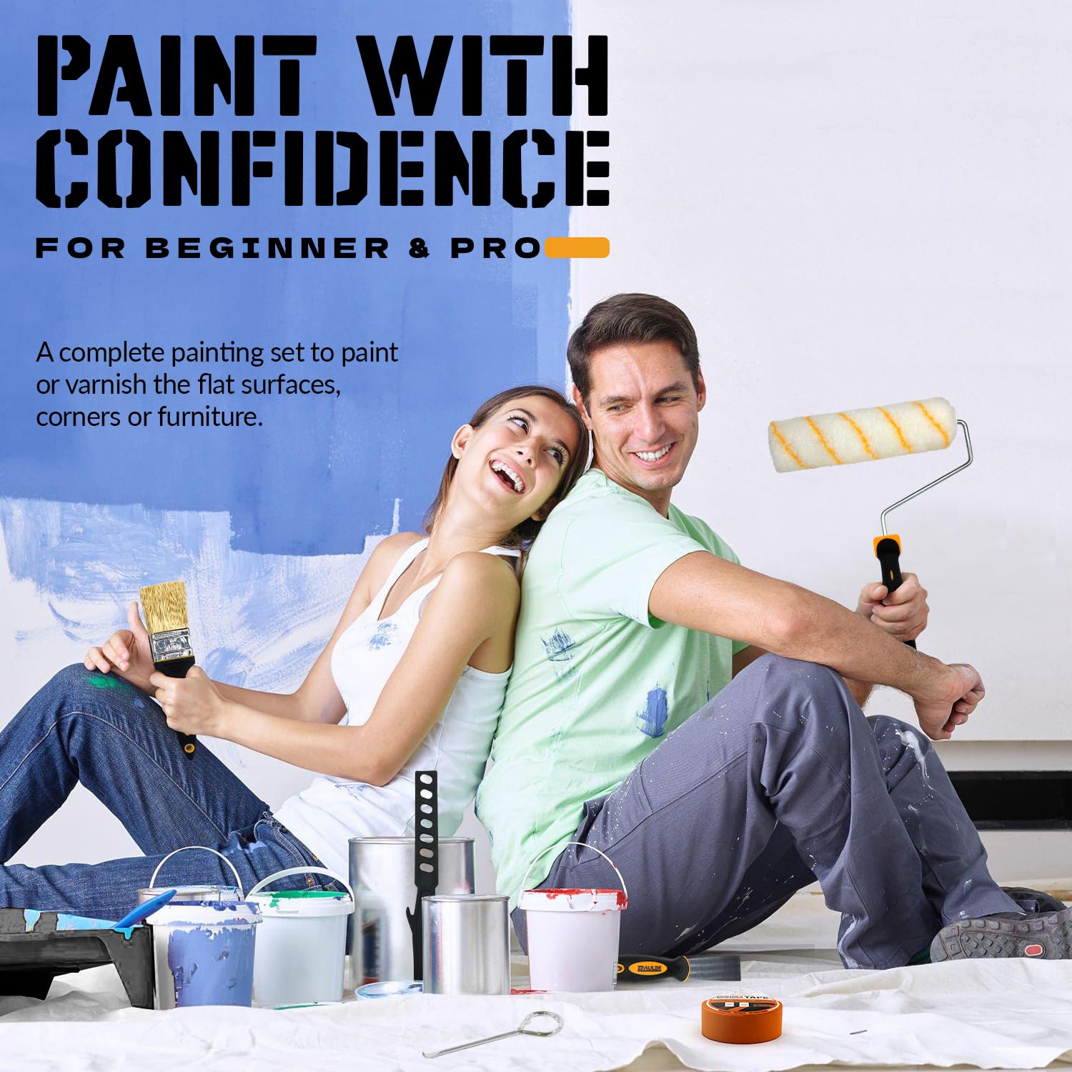 - EVERYTHING THAT YOU NEED - Our roller sets for painting Includes a Large Paint Tray; 9 and 4 Inch Roller; 2 Large & 2 Mini Roller Covers; Masking Tape; Painter's Brush & Paint Mixers and we have 3 sets (7 Pcs, 10Pcs and 21Pcs)